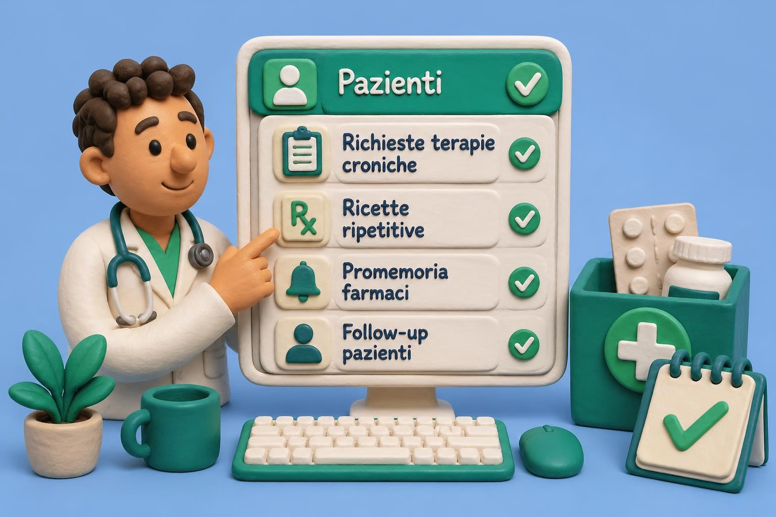 La gestione delle terapie croniche rappresenta una parte significativa del carico di lavoro quotidiano per i medici di medicina generale. Tra telefonate continue, messaggi WhatsApp personali e richieste poco chiare, il tempo dedicato all'organizzazione delle terapie sottrae risorse preziose alla vera attività clinica. Una gestione terapie croniche app strutturata può trasformare radicalmente questo scenario, offrendo ai medici di base strumenti concreti per riprendere il controllo del proprio tempo e migliorare la qualità dell'assistenza ai pazienti con patologie croniche.