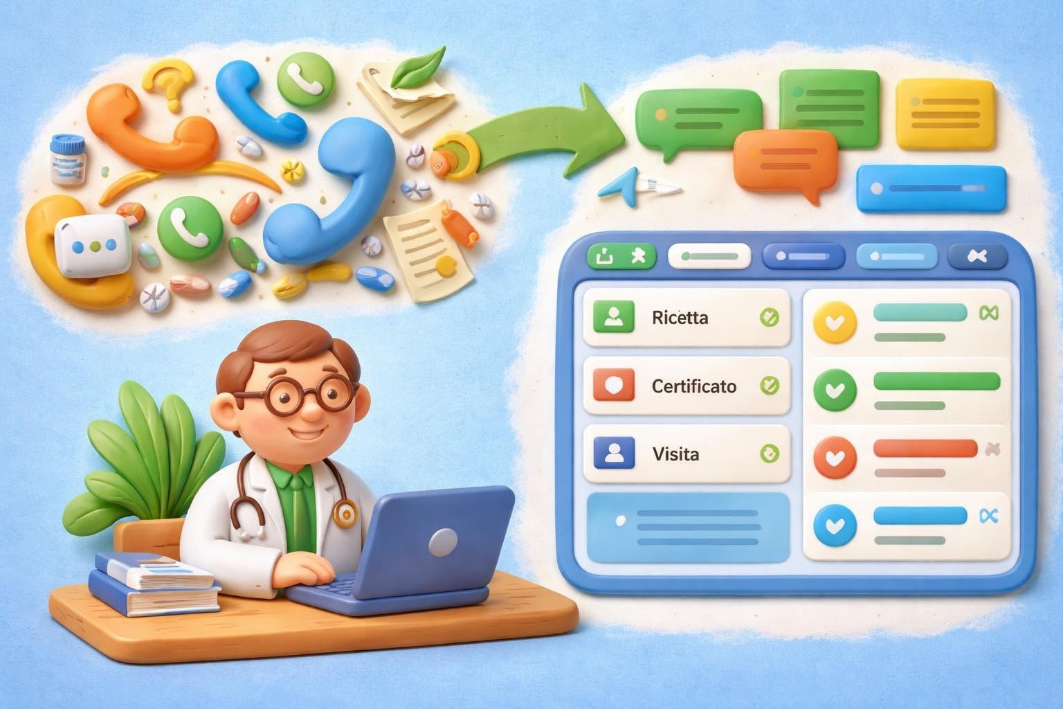 La giornata tipo di un medico di medicina generale inizia con una certezza: il telefono squilla mentre si sta visitando, WhatsApp vibra durante la pausa pranzo, e la sera si accumulano richieste che richiedono risposte immediate. Questo flusso disordinato crea inefficienze sistemiche che pesano su medici, segretarie e pazienti.