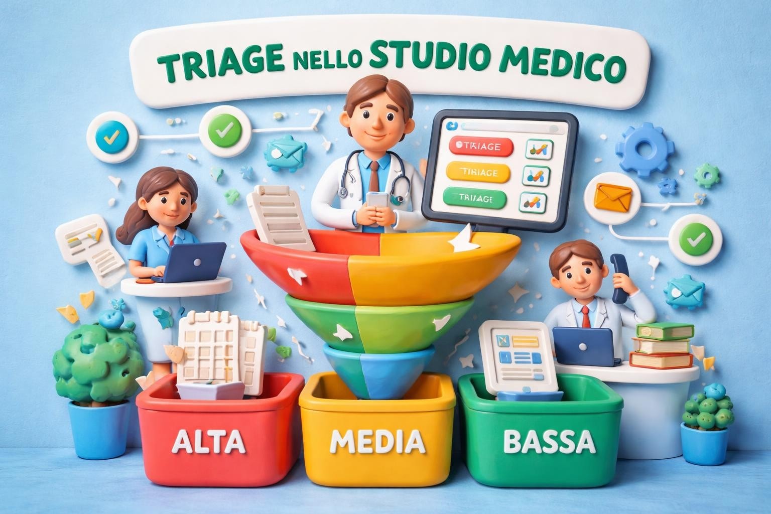 Nel contesto sanitario, il termine triage evoca immediatamente l'immagine del pronto soccorso: il punto in cui un infermiere esperto valuta rapidamente la gravità di ogni paziente, assegna un codice colore e stabilisce chi deve essere visitato per primo. Questo processo di selezione e prioritizzazione è fondamentale per salvare vite quando le risorse sono limitate e le necessità molteplici. Ma il concetto di triage va oltre l'emergenza ospedaliera: può e dovrebbe essere applicato anche negli studi di medicina generale, dove ogni giorno si affollano richieste di natura diversa, urgenza variabile e complessità differente. Telefonate che si accavallano, messaggi WhatsApp personali del medico che si mescolano con richieste ufficiali, email sparse, referti consegnati a mano, certificati da compilare a fine giornata: senza un sistema organizzato, anche la semplice gestione delle richieste non urgenti diventa un triage continuo, non pianificato, che consuma tempo ed energie preziose.